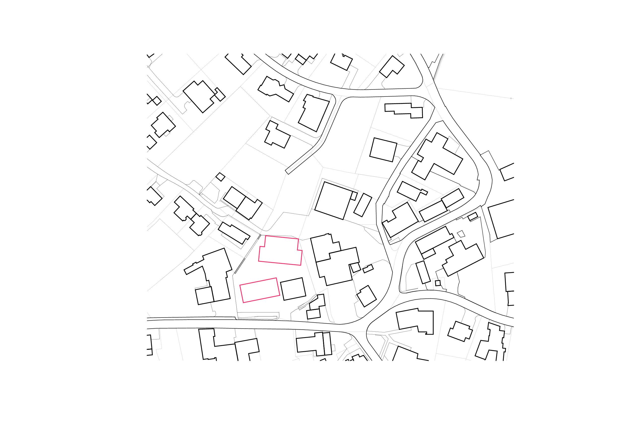 Die Scheune wird in ihrer Substanz erhalten, nimmt gemeinschaftliche Funktionen auf und dient zudem der Zufahrt in die im Hang liegende Einstellhalle über welcher im nördlichen Teil des Grundstücks ein Mehrfamilienhaus mit Flachdach und zehn Wohnungen platziert wird.