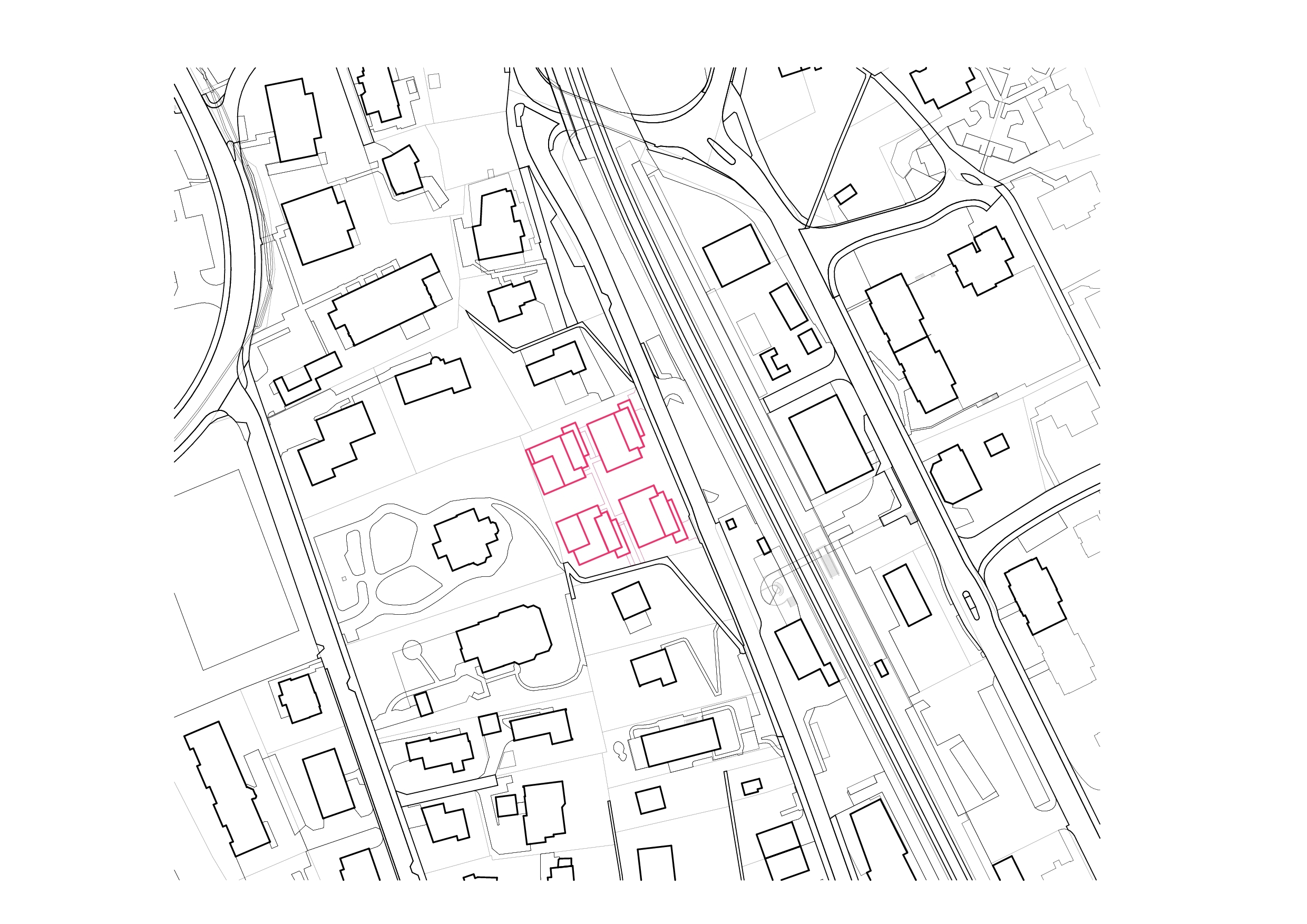 Die vier präzise in die steile Hanglage eingepassten Baukörper gliedern sich in ihrer Volumetrie und Massstäblichkeit harmonisch ins Bebauungsmuster der Umgebung ein.
